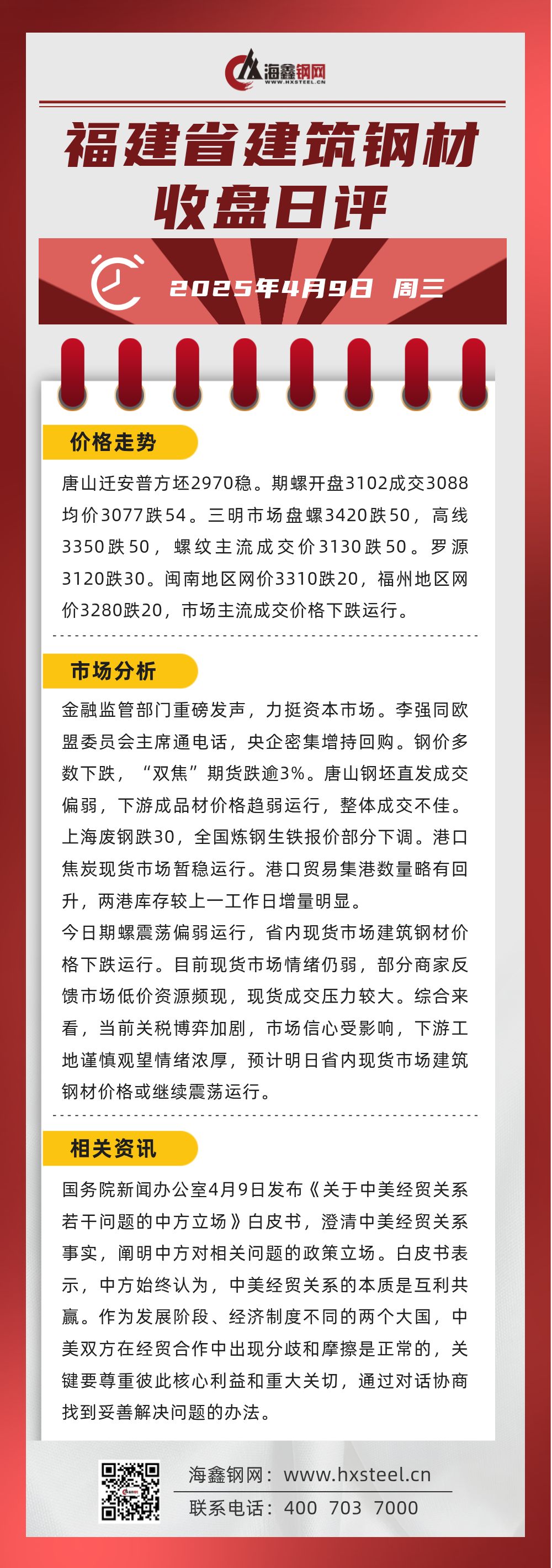 4月9日福建省內(nèi)建筑鋼材收盤(pán)日評(píng)