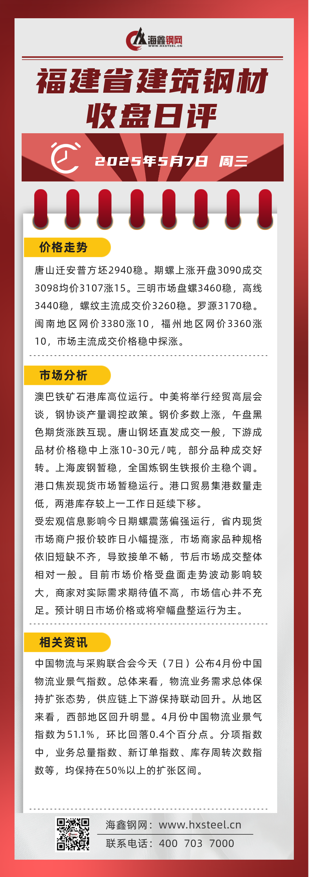 5月7日福建省內(nèi)建筑鋼材收盤日評