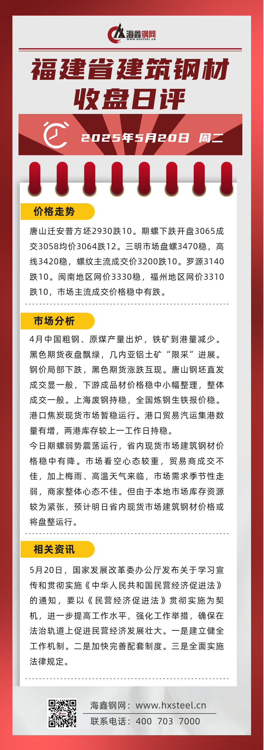 5月20日福建省內(nèi)建筑鋼材收盤(pán)日評(píng)
