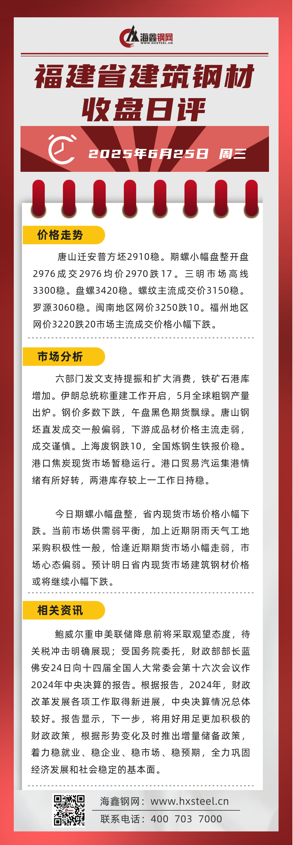 6月25日福建省內(nèi)建筑鋼材收盤日評(píng)