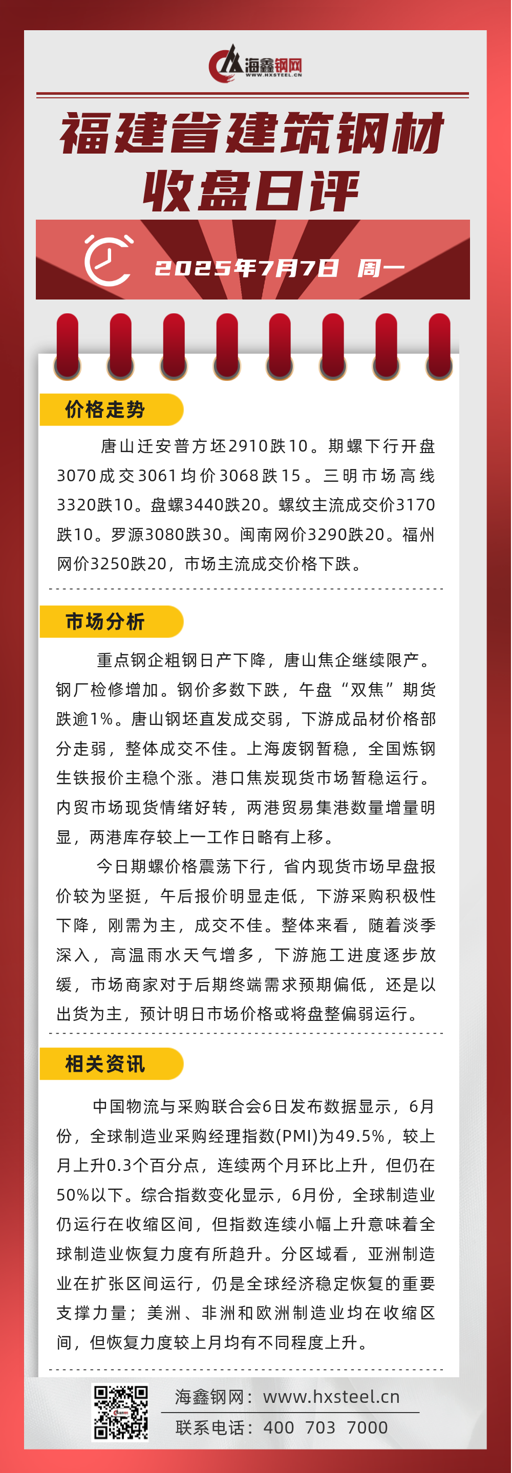 7月7日福建省內(nèi)建筑鋼材收盤日評(píng)