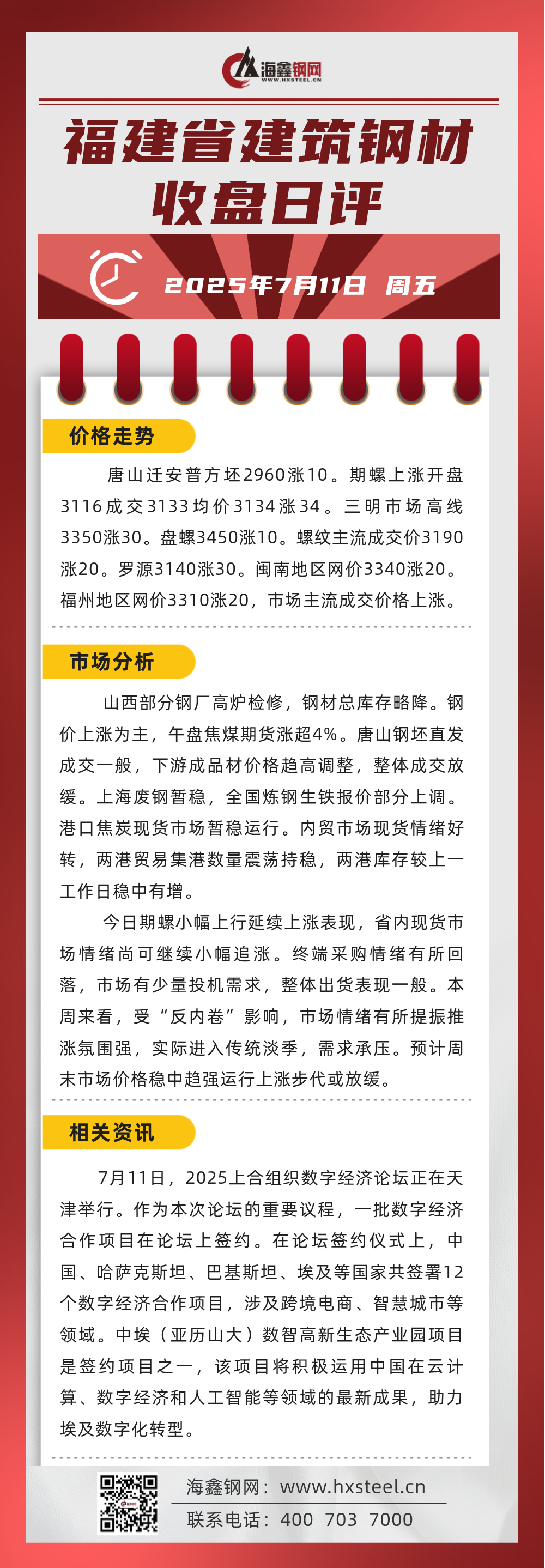 7月11日福建省內(nèi)建筑鋼材收盤日評(píng)