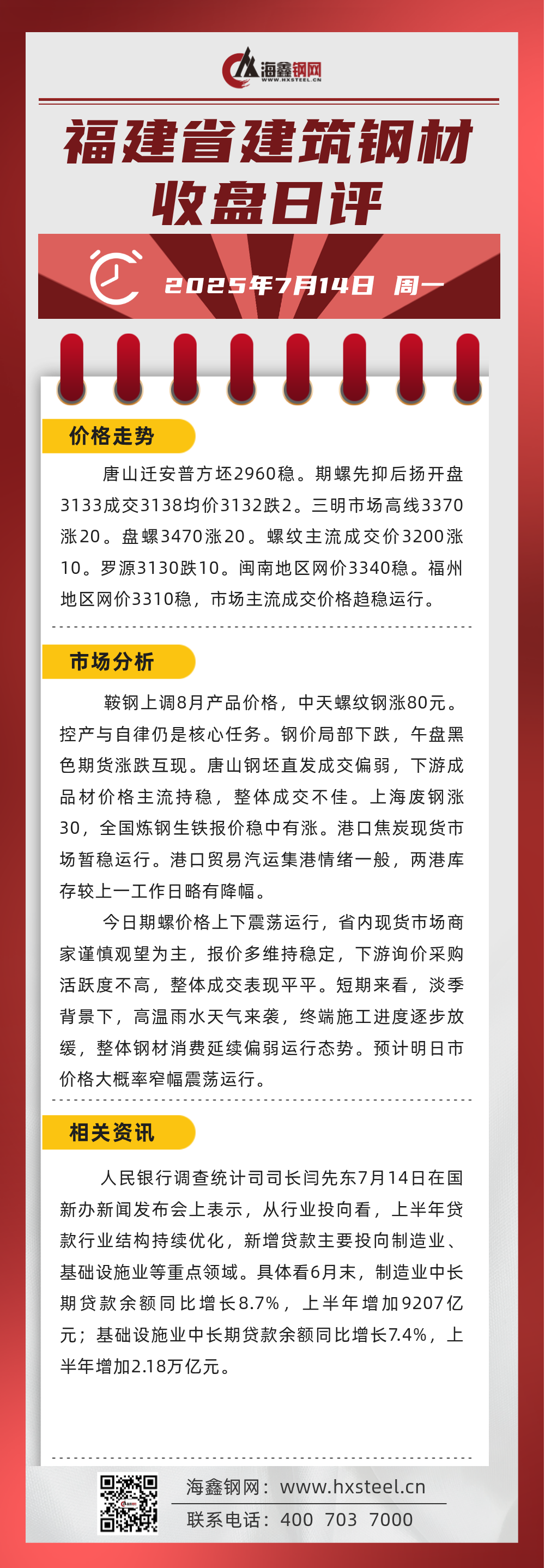 7月14日福建省內(nèi)建筑鋼材收盤日評