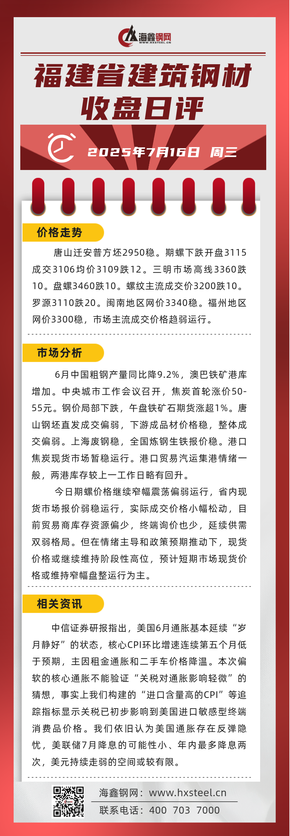 7月16日福建省內(nèi)建筑鋼材收盤日評