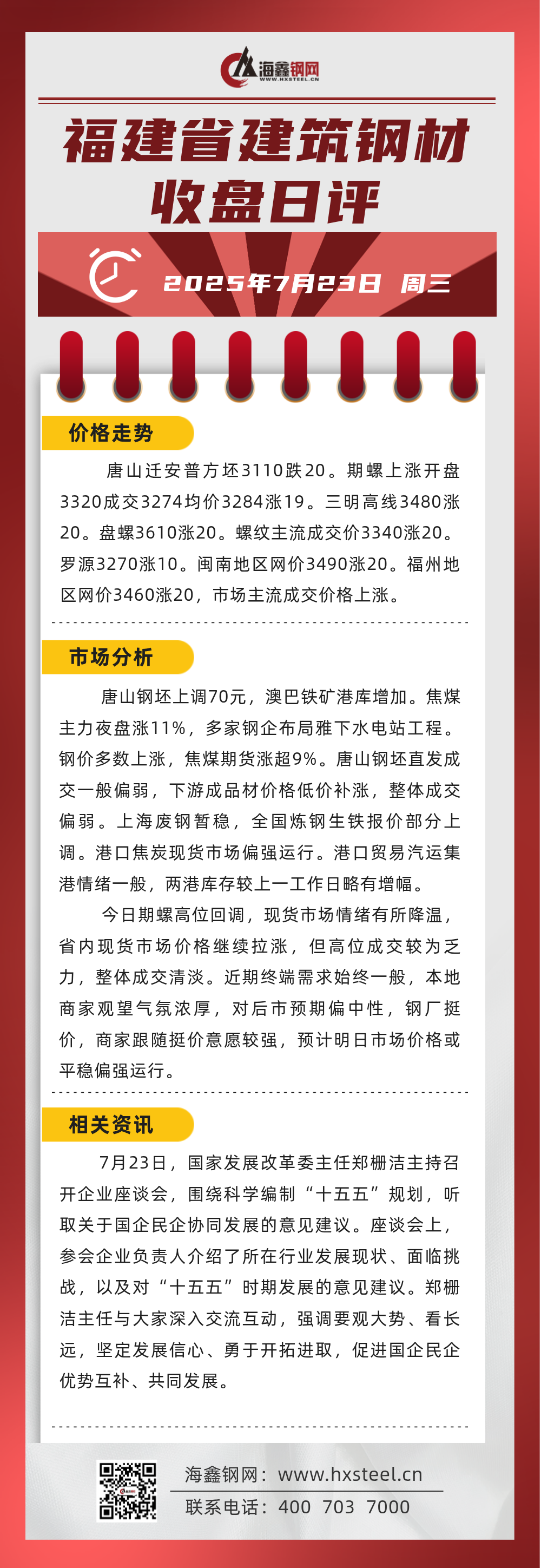 7月23日福建省內建筑鋼材收盤日評