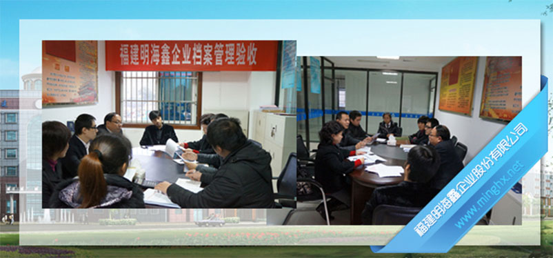 2012年12月28日,三明市檔案局檔案規范化管理評估驗收組的三位專家對福建明海鑫企業股份有限公司綜合檔案室進行企業檔案規范化管理評估考核驗收,并通過考評。福建明海鑫成為福建省首家通過企業檔案規范化管理評估指標體系的民營企業。