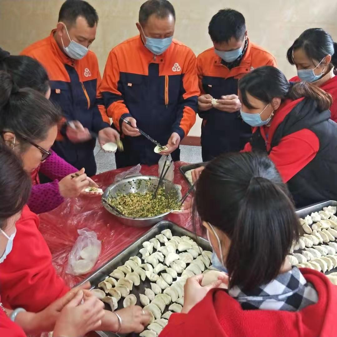 臨近傍晚熱氣騰騰的餃子出鍋了,職工們紛紛迫不急待的品嘗起來,大家臉上露出了開心的笑容,紛紛表示能夠吃到一份大家一起包的香噴噴的餃子,讓他們感受到了如家般的溫暖,吃到包著硬幣餃子的員工臉上更是喜笑顏開,激動不已!春節把硬幣放餃子里面,吃到帶硬幣的餃子預示來年有福氣,會取得財源廣進的好運。雖然因為疫情原因很多職工留明過年,但是在這和諧溫馨的場景中,每個人都像在家中忙過年一樣開心。