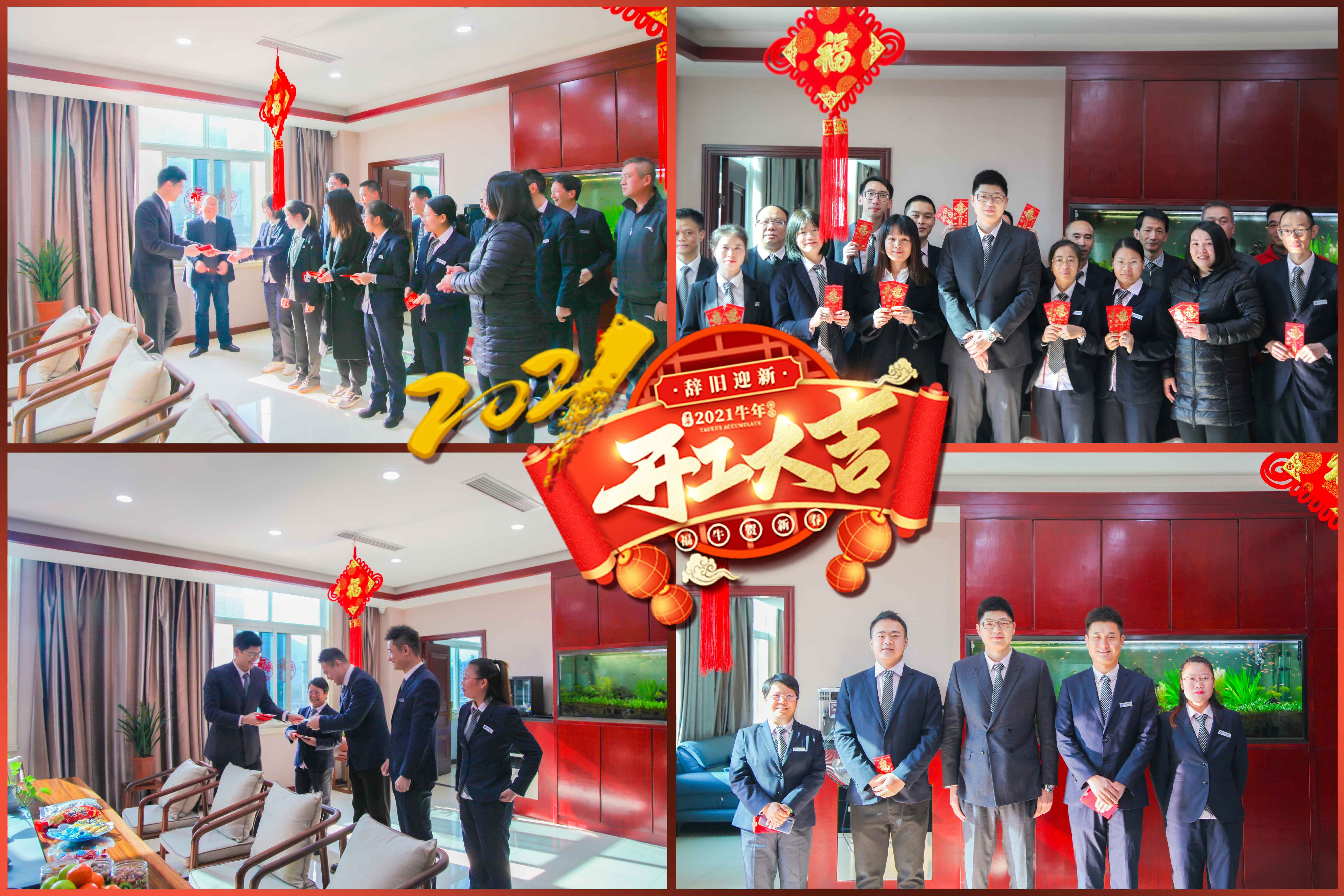 各部門(mén)領(lǐng)導(dǎo)也帶領(lǐng)員工們到執(zhí)行總經(jīng)理辦公室拜新年、賀開(kāi)工,并恭祝公司在新的一年里生意興隆,牛年大吉!