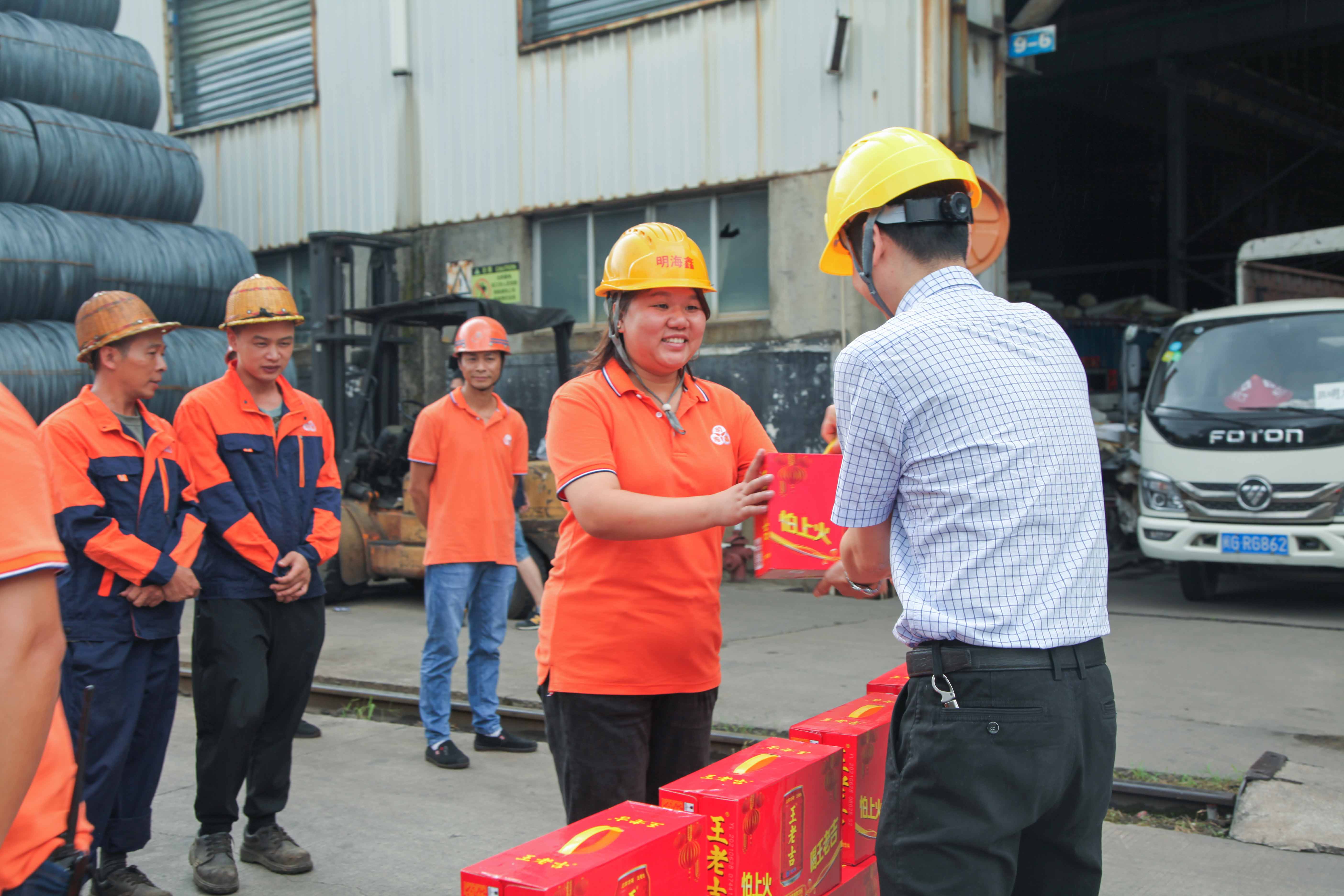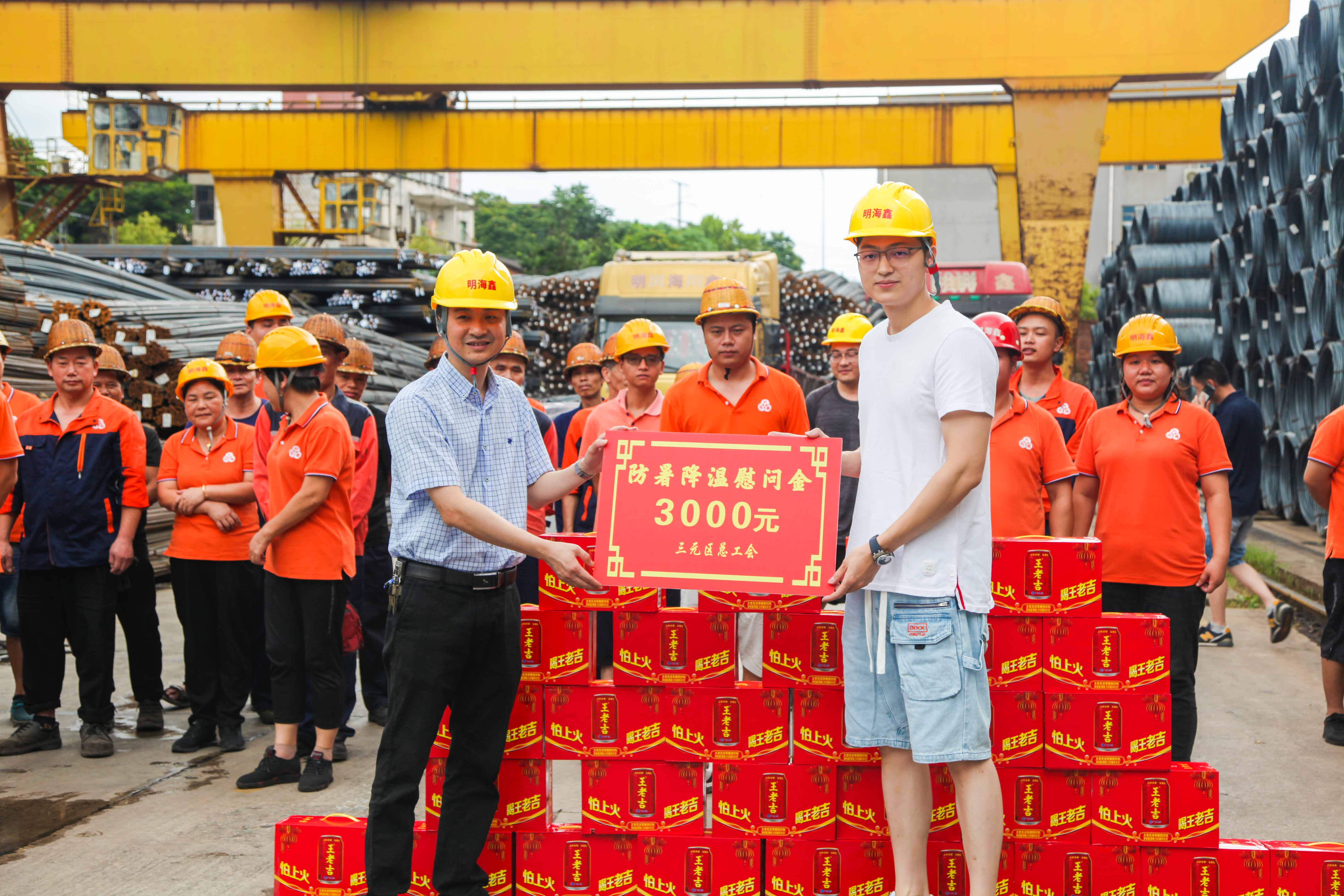 在活動(dòng)現(xiàn)場,區(qū)總工會(huì)主席陳一龍將涼茶送到每一個(gè)工人的手中,并為我司送來3000元防暑降溫慰問金。同時(shí)為我司在高溫天氣下堅(jiān)守崗位的一線職工送去關(guān)懷,叮囑他們在工作中要注意勞逸結(jié)合,把生命安全放在第一位。并叮囑他們夏季炎熱要保重身體,做好防暑降溫措施,同時(shí)抓好安全生產(chǎn)工作。
